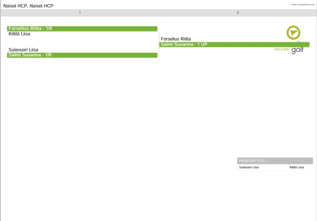 1. peli su 15.6.2025 mennessä | Liisa Sulavuori vs Susanna Salmi 3/2 | Riitta Forselius vs Liisa Kiltilä 6/5 |