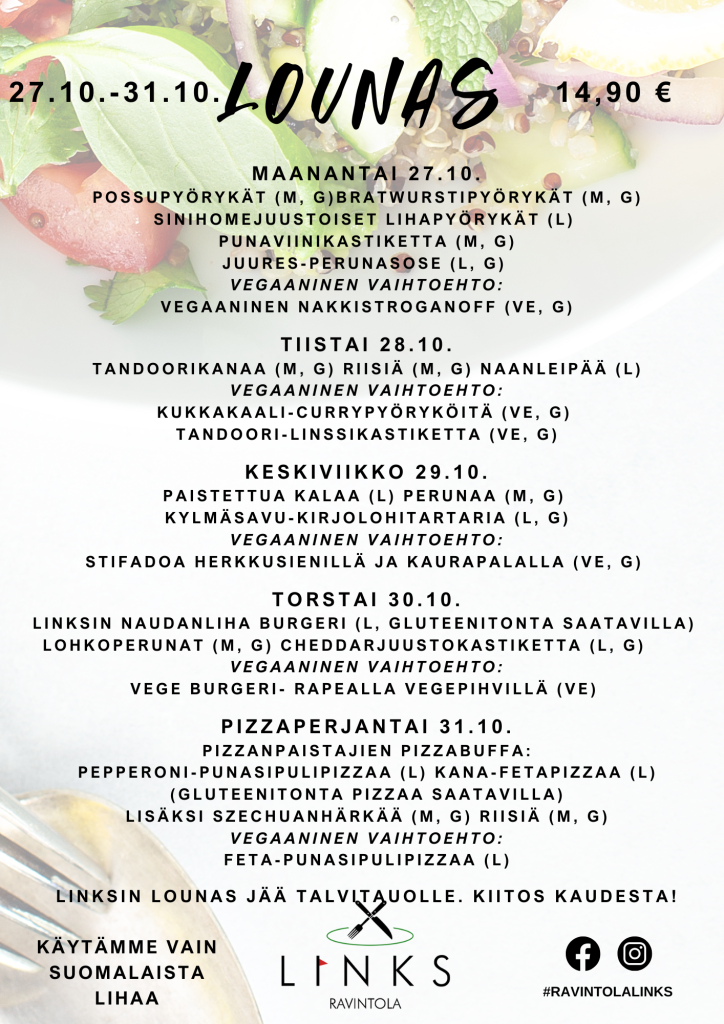 Linksin lounasbuffet jää talvitauolle perjantain 31.10. jälkeen.